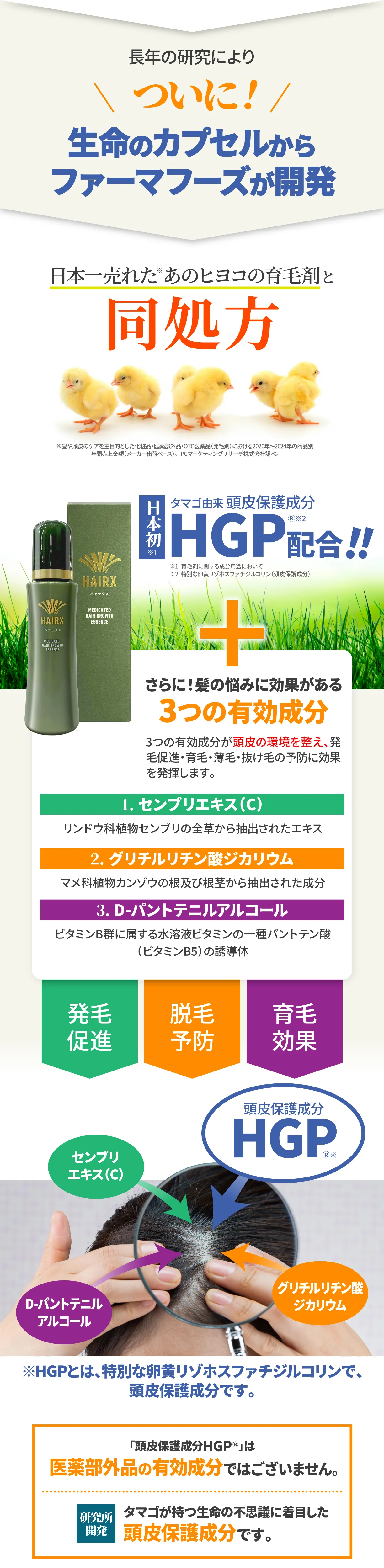 発毛促進、育毛、毛生促進、養毛、薄毛、ふけ、かゆみ、脱毛の予防、病後・産後の脱毛